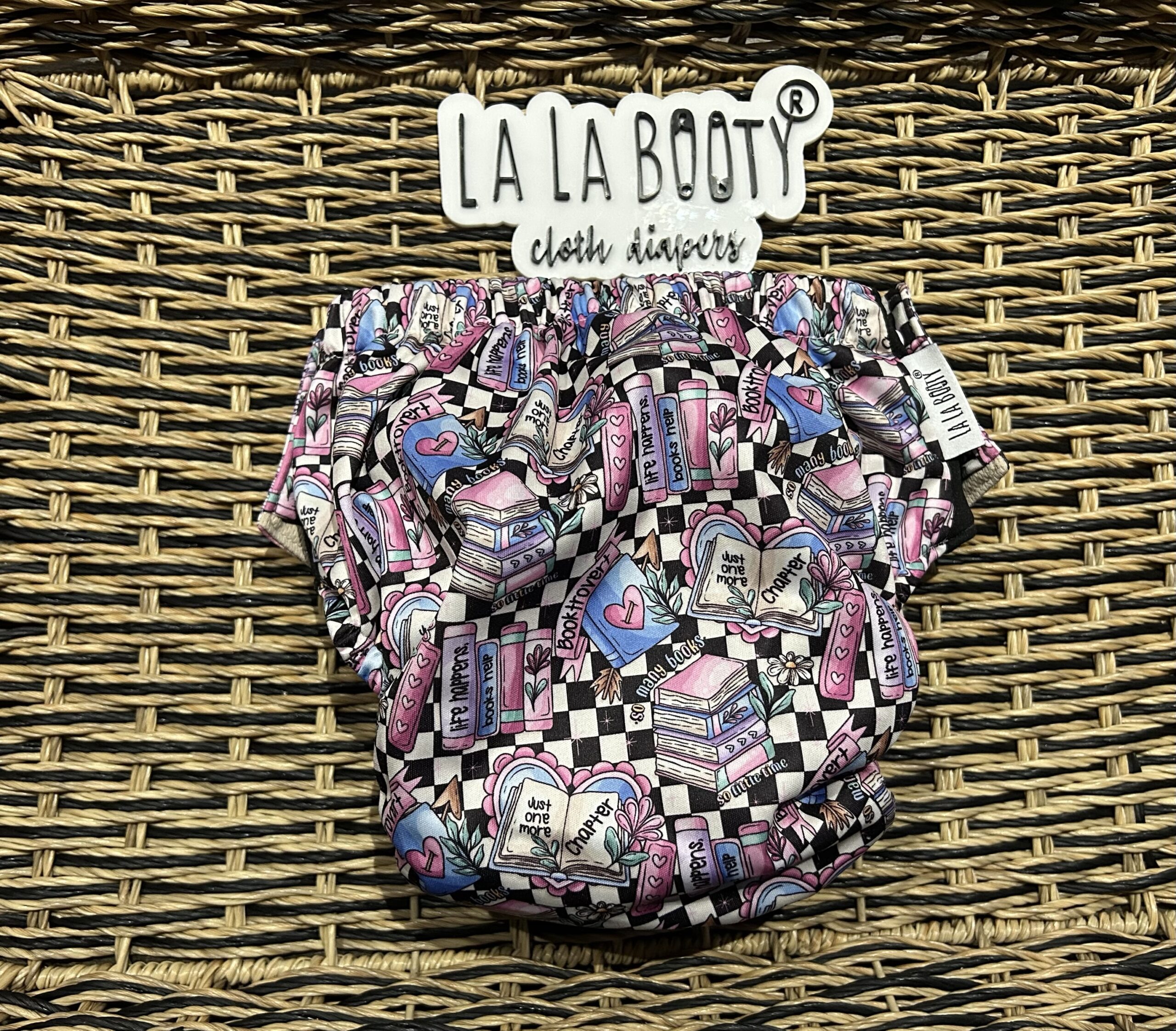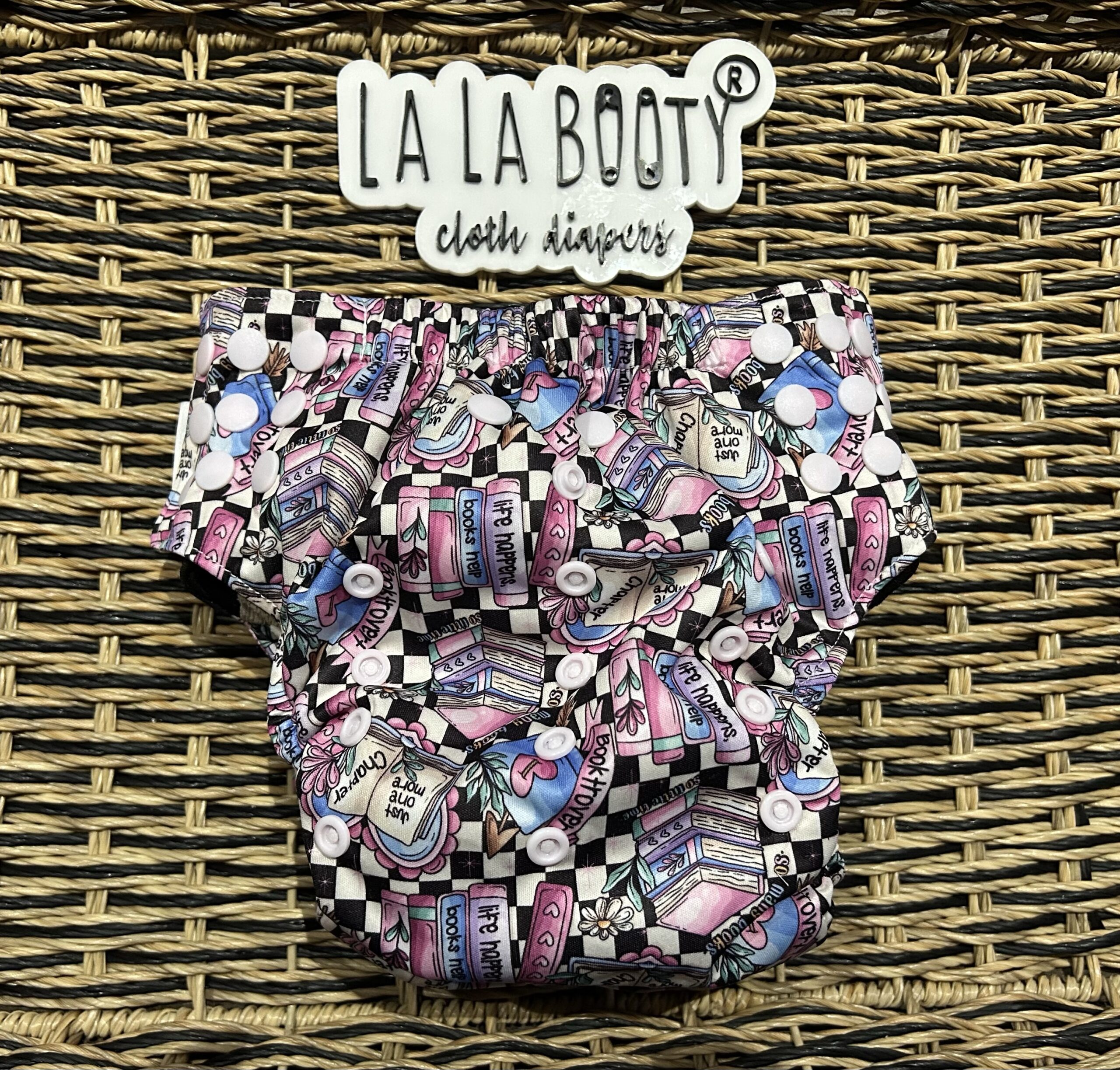Pull up style reusable training diaper. Athletic wicking jersey lining for moisture wicking and comfort, stretchy elastics and tabs to pull the diaper up and down easily, front pocket opening for easy adjusting while standing, side snaps and pop up style double gusset. 3×5 rise for a wide range of sizing. Can be used over fitted diapers as well due to the pop up gusset.