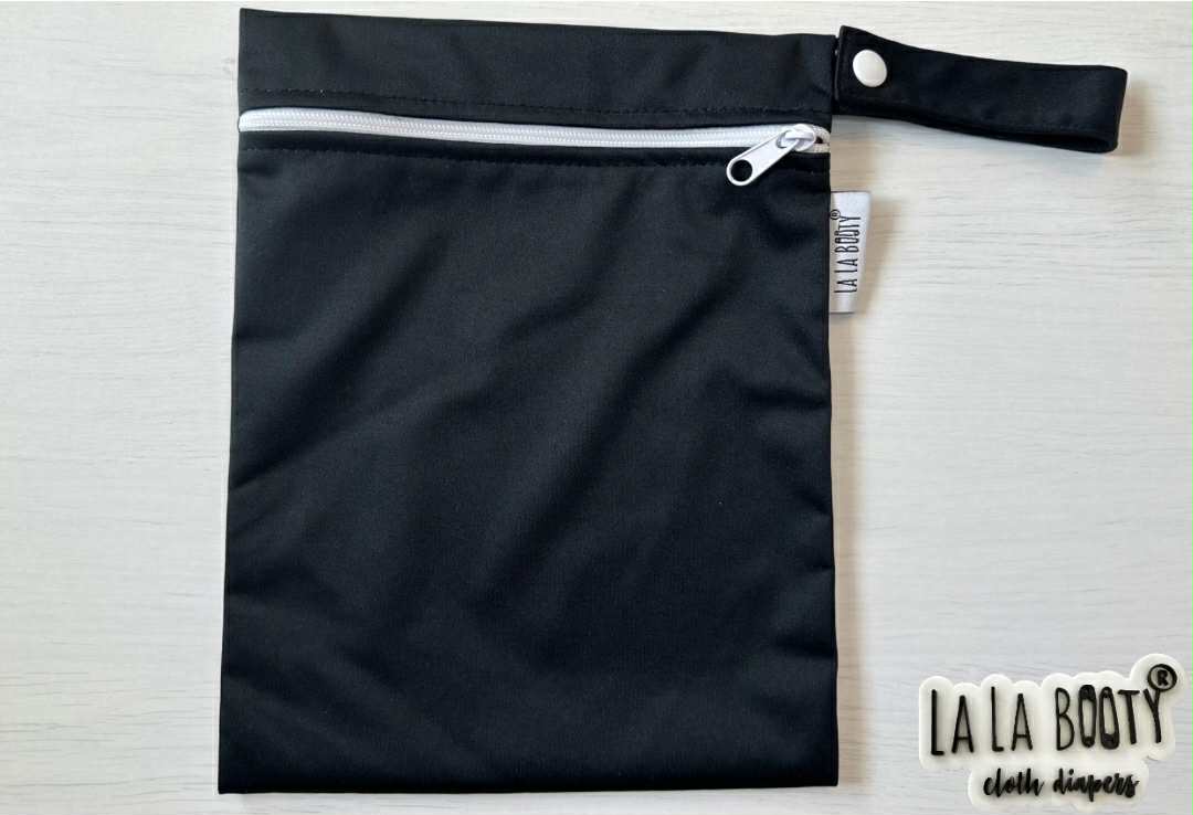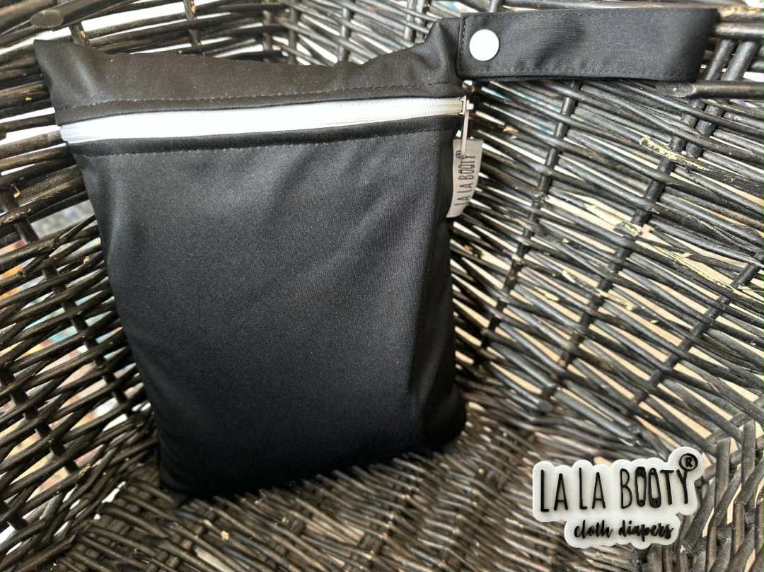 Miniature wet bag holds a couple of wipes and 1 diaper or 1 diaper