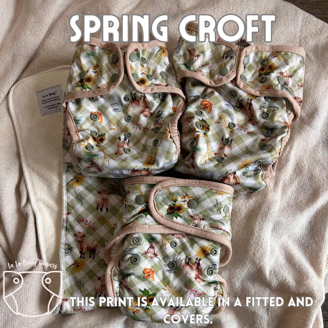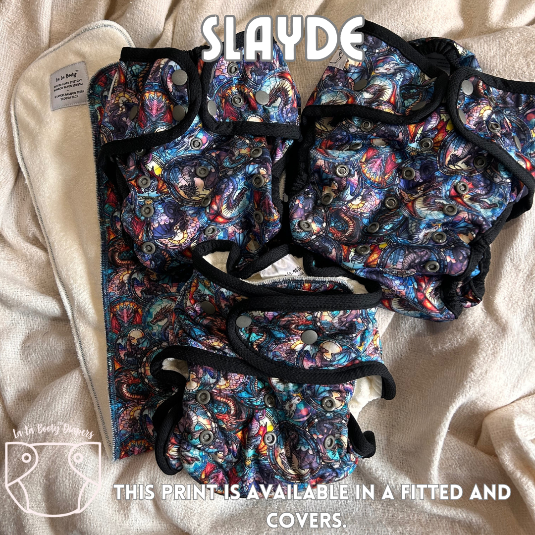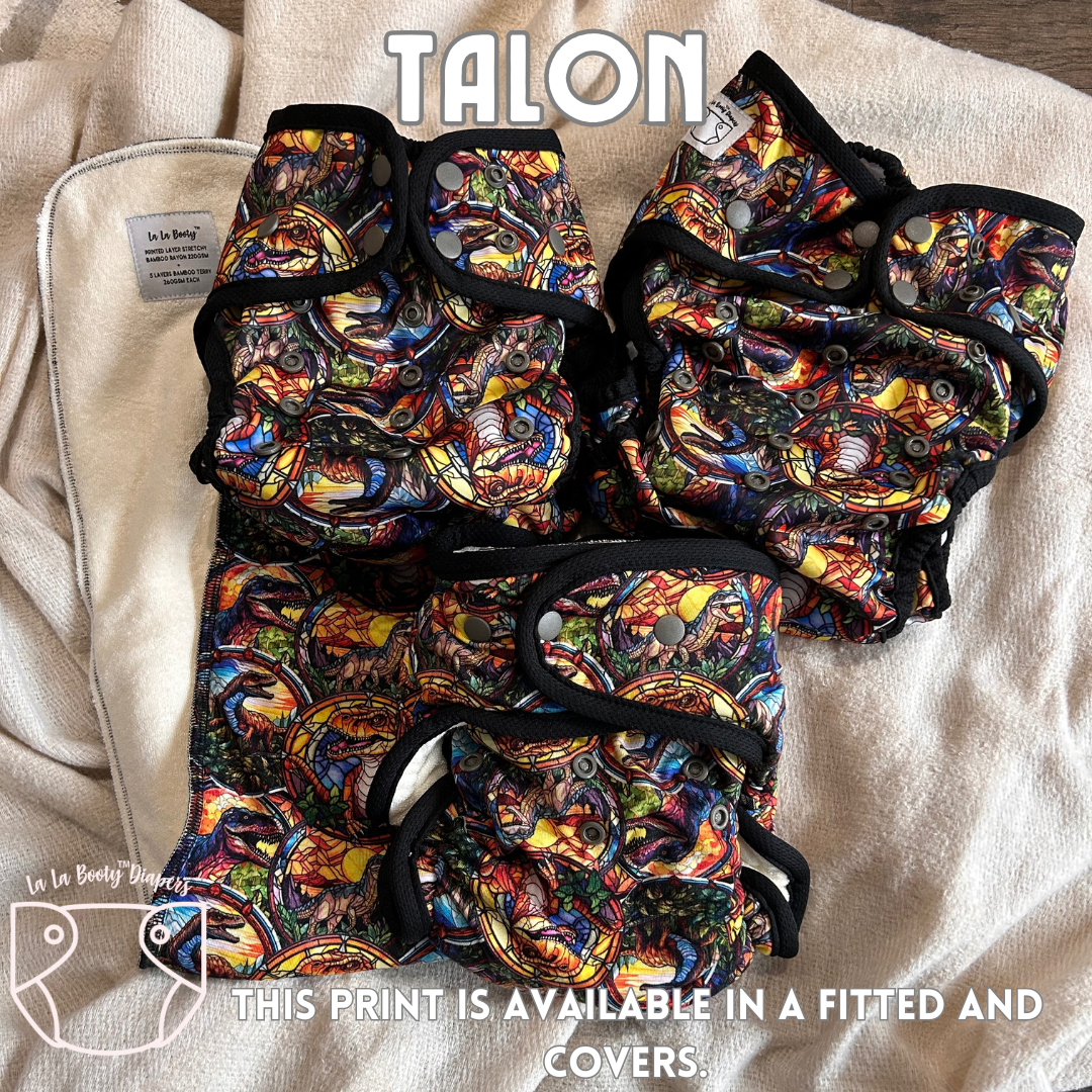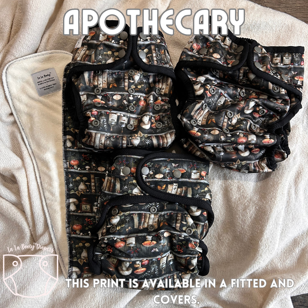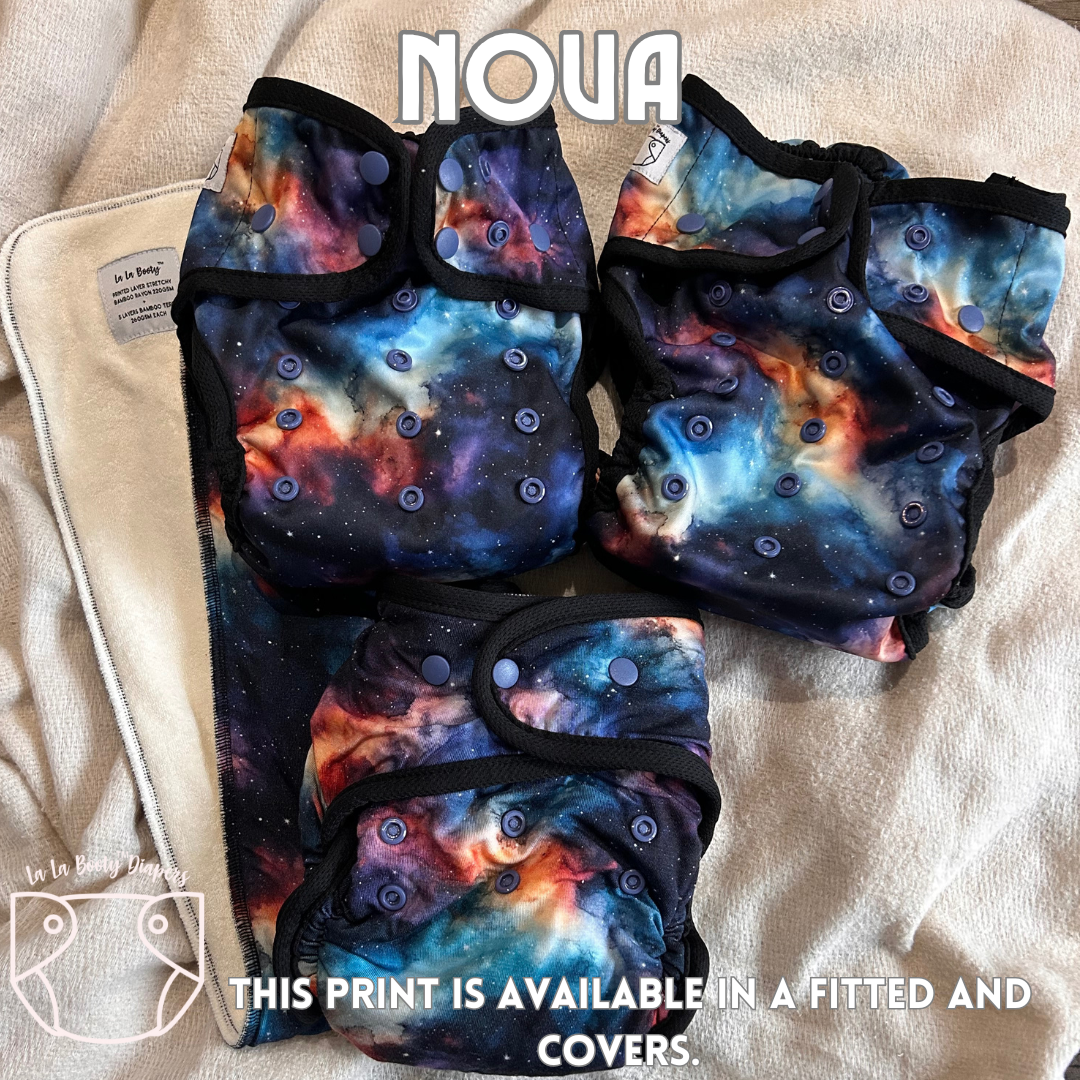 Cover cloth diapers are the outer shell and do not come with absorbency sewn in. These outer shells are designed for coverage over our fitted diapers but can be used with inserts, prefolds or preflats as well.