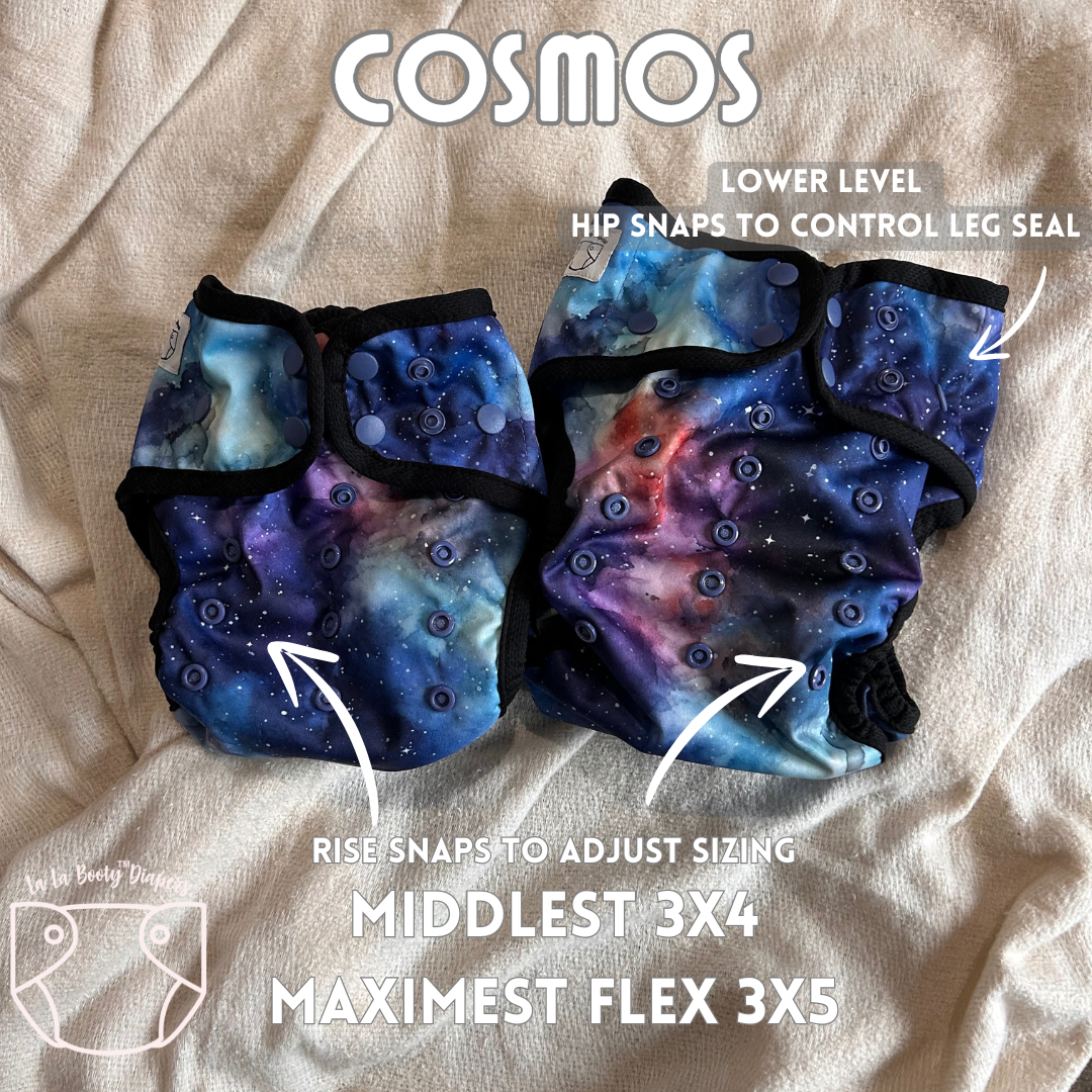 Middlest Size is 7-40lbs. This weight range is assuming a 6 layer insert so if you are going over a fitted diaper we recommend sizing up at around 20 lbs to the Maximest Flex, especially if you plan to use the snake insert.