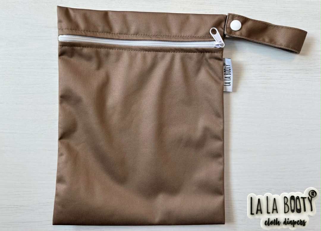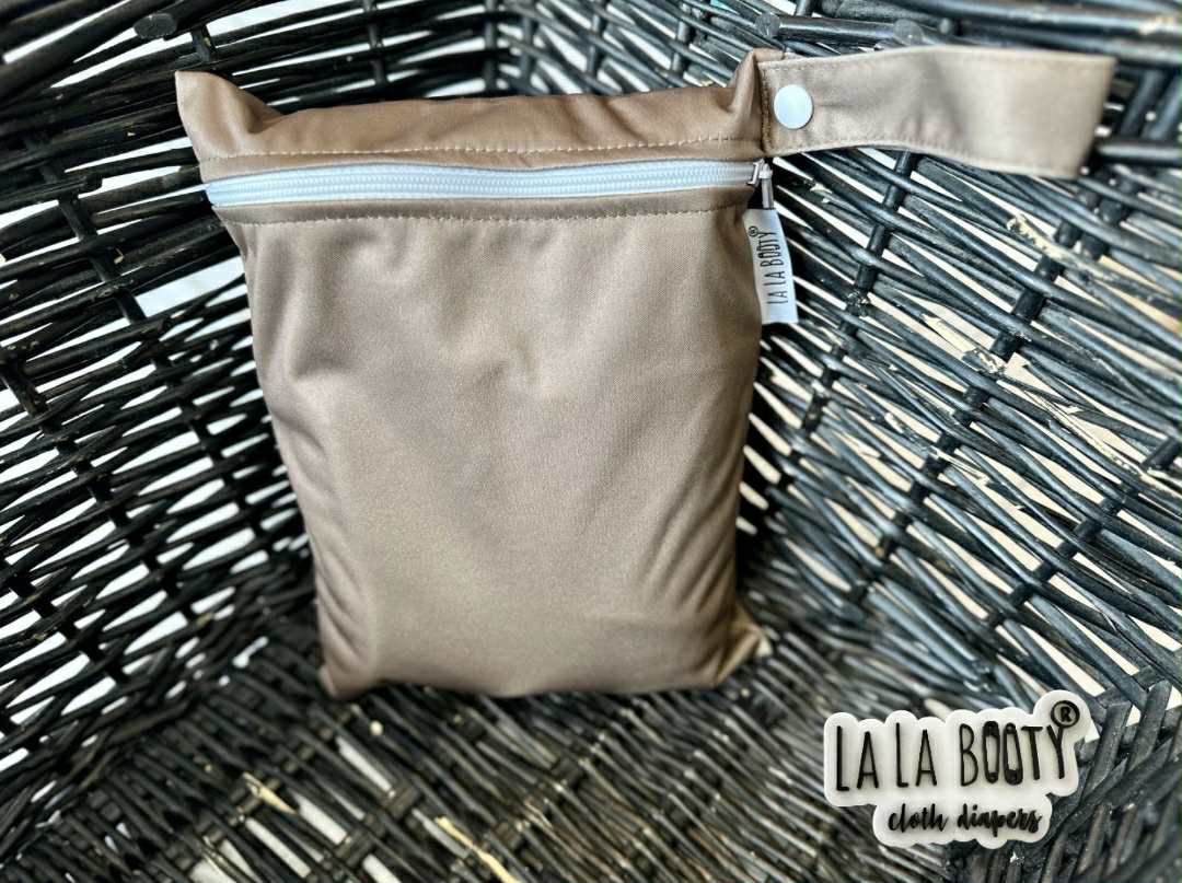 Miniature wet bag holds a couple of wipes and 1 diaper or 1 diaper