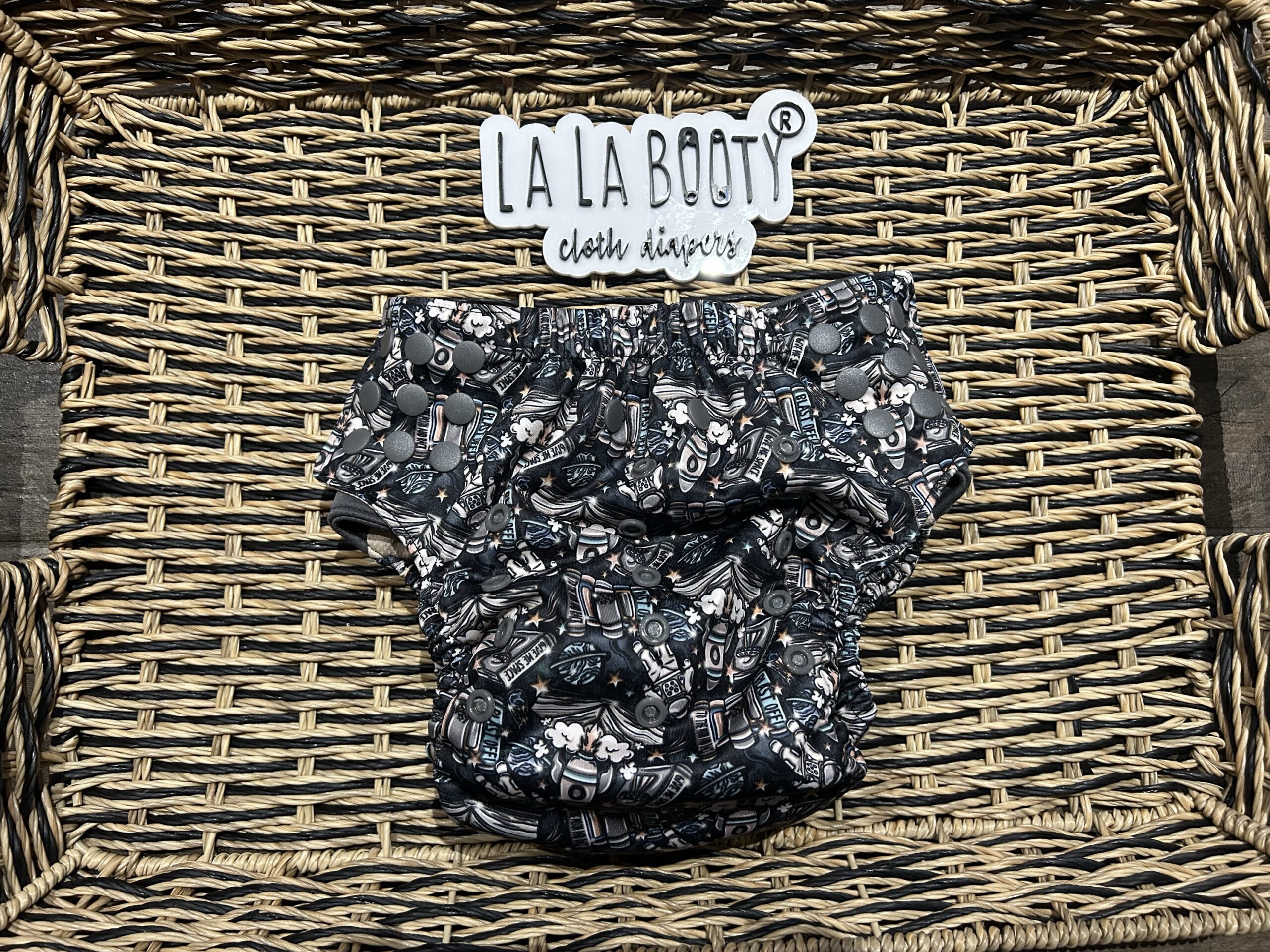 Pull up style reusable training diaper. Athletic wicking jersey lining for moisture wicking and comfort, stretchy elastics and tabs to pull the diaper up and down easily, front pocket opening for easy adjusting while standing, side snaps and pop up style double gusset. 3×5 rise for a wide range of sizing. Can be used over fitted diapers as well due to the pop up gusset.