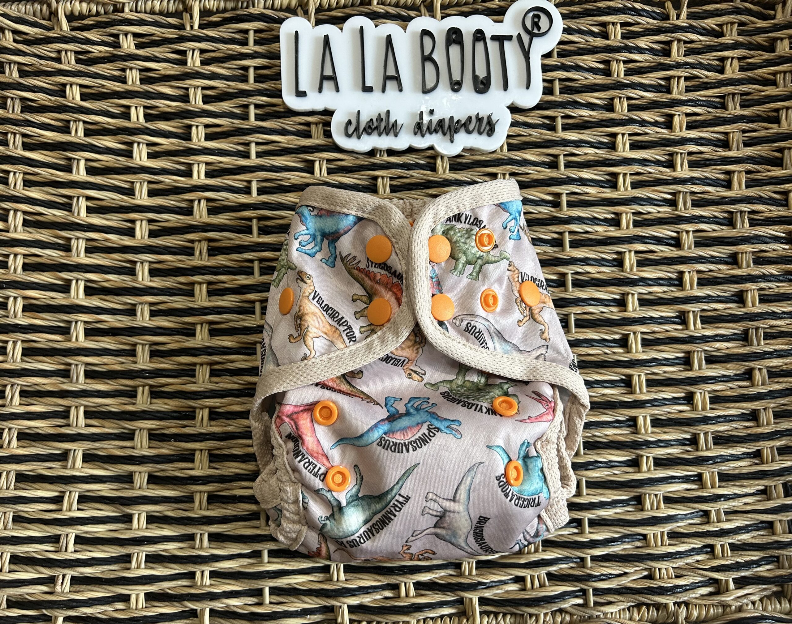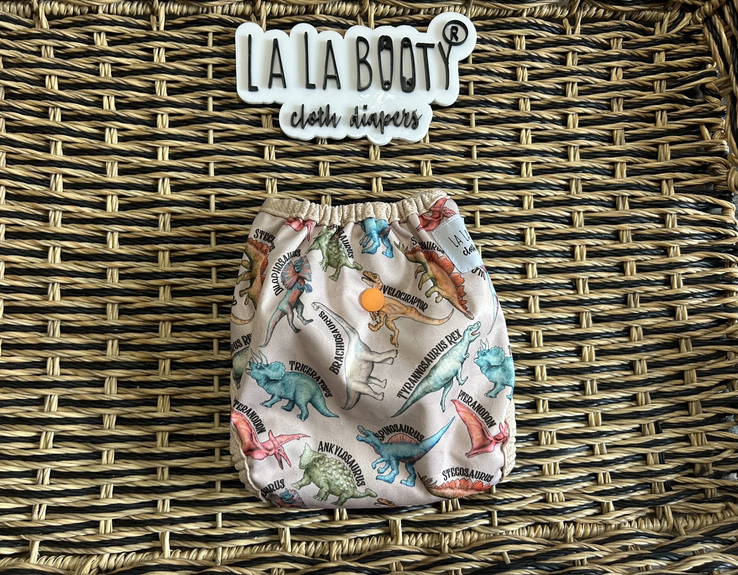 This design features front elastic, an umbilical cord snap down, rise snaps to adjust the length, lower level hip snaps, pop up gussets if you want to use them over a fitted, prefold, flat or preflat. The snap for the insert is in the back to pair with the matching littlest (newborn) sized inserts.