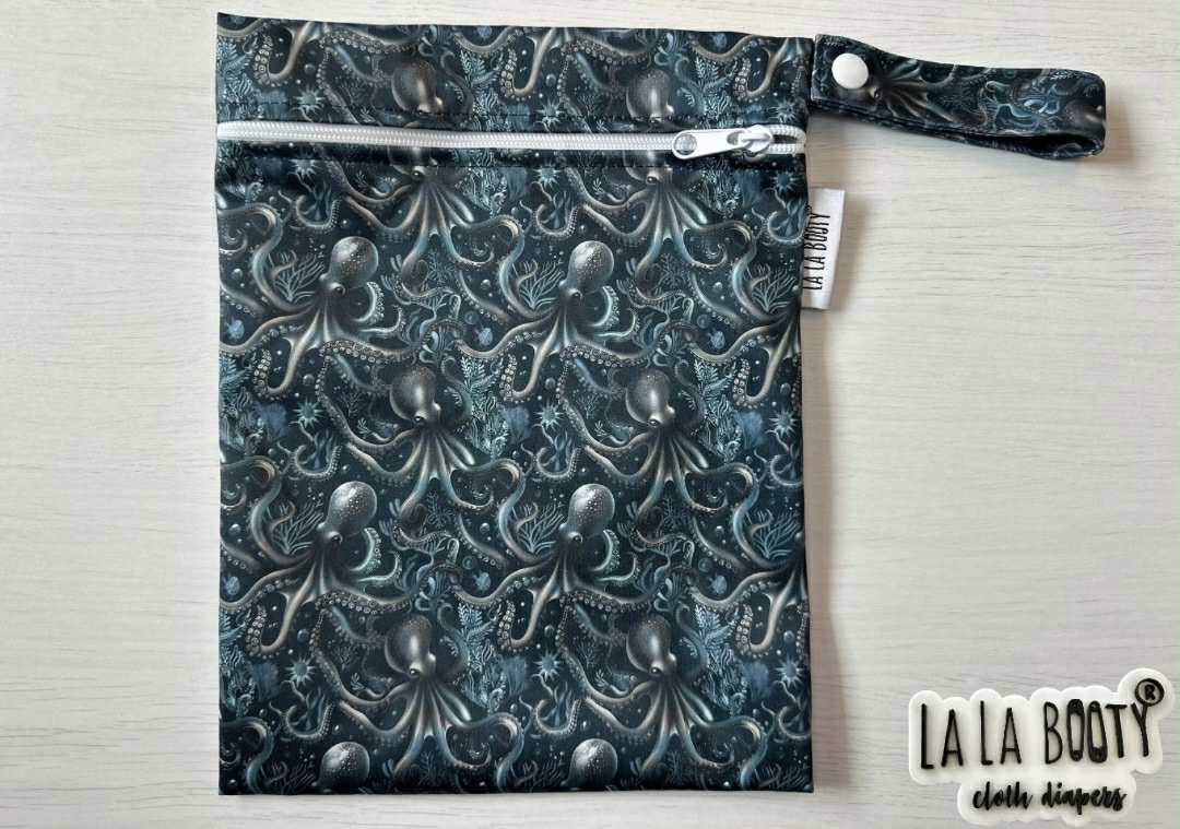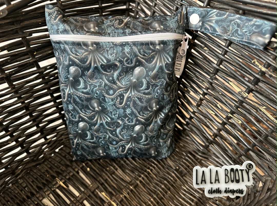 Miniature wet bag holds a couple of wipes and 1 diaper or 1 diaper